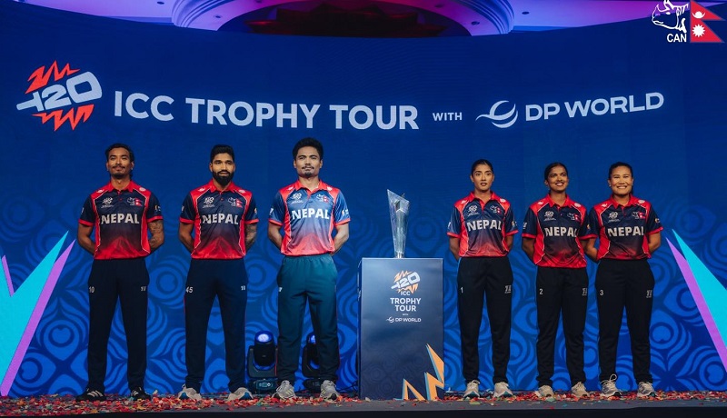 यसैबीच आईसीसी टी–२० विश्वकप सन् २०२६ को ‘ट्रफी’ नेपाल आइपुगेको छ । ‘ट्रफी टुर’ कार्यक्रम अन्तर्गत आज पोखरामा ट्रफीको फोटोशूट, वसन्तपुर क्षेत्रमा ट्रफी प्रदर्शनी तथा भोलि बौद्धनाथ स्तूप परिसरमा ट्रफी प्रदर्शन गर्ने कार्यक्रम रहेको नेपाल क्रिकेट संघ ९क्यान० ले जनाएको छ । टी–२० विश्वकपको ट्रफी नेपालमा पहिलो पटक ल्याइएको हो ।नेपालमा यसअघि सन् २०१८ मा एकदिवसीय विश्वकपको ट्रफी ल्याइएको थियो । टी–२० विश्वकपको १०औं संस्करण आउँदो फेब्रुअरी ७ तारिखदेखि भारत र श्रीलङ्कामा शुरू हुँदैछ ।नेपालसहित २० वटा टोली सहभागी प्रतियोगिताको फाइनल खेल मार्च ८ तारिखमा हुनेछ । विश्वकपमा नेपाल समूह ‘सी’ मा परेको छ । यो समूहमा नेपालसँगै इङ्ग्ल्यान्ड, वेस्ट इन्डिज, इटाली र बङ्गलादेश रहेका छन् ।