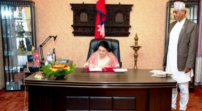 काठमाडौं, २८ भदौ । राष्ट्रपति विद्यादेवी भण्डारीले विभिन्न पाँचवटा विधेयक प्रमाणीकरण गरेकी छन् । आफूसमक्ष
