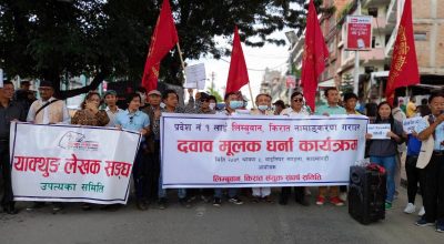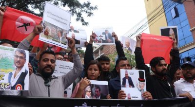 काठमाडौं, ५ साउन । नेपाल राष्ट्र बैंकका गभर्नर महाप्रसाद अधिकारीको राजीनामा माग गर्दै आज माइतीघरमा
