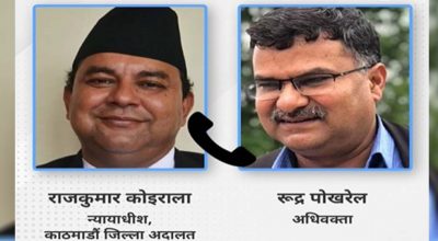 काठमाडौं ३ साउन । जिल्ला अदालत काठमाडौंका न्यायाधीश राजकुमार कोइरालालाई घुस प्रस्ताव गरेका अधिवक्ता रुद्रप्रसाद