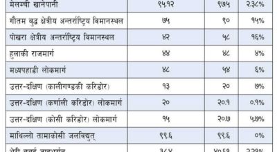 काठमाडौ ८ जेठ — राष्ट्रिय गौरवका आयोजना २२ आयोजनामध्ये प्रायःको भौतिक प्रगति ५ प्रतिशतमात्रैमा सिमिति