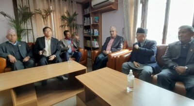 KATHMANDU: Leaders of CPN-UML held a meeting with Madhav Kumar Nepal, Chairman of Unified Socialist