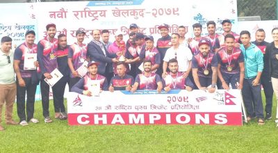 काठमाडौँ, १ असोज । नवौँ राष्ट्रिय खेलकुदको पहिलो स्वर्ण नेपाल पुलिस क्लबले प्राप्त गरेको छ