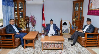 काठमाडौँ । प्रमुख प्रतिपक्षी दल नेकपा (एमाले)का अध्यक्ष केपी शर्मा ओलीसँगको भेटवार्ताका लागि गृहमन्त्री बालकृष्ण