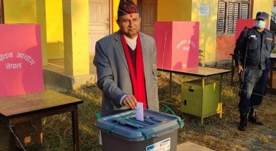बुटवल, ४ मंसिर । नेकपा (एमाले) महासचिव शंकर पोखरेलले दाङको तुलसीपुरबाट मतदान गरेका छन् । उनले जनता