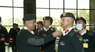 काठमाडौं । नेपाली सेनाका प्रधानसेनापति प्रभुराम शर्माले बढुवा भएका तीन जर्नेललाई शुक्रबार दज्र्यानी चिन्ह लगाइदिएका