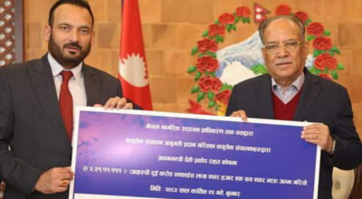 Kathmandu, Nov 8: The Civil Aviation Authority of Nepal (CAAN) today handed a cheque of