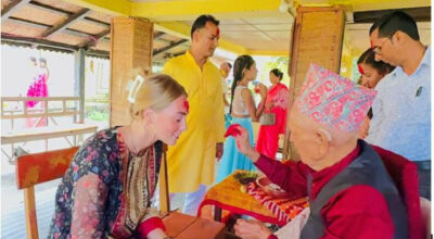 Foreign tourists observe Bijaya Dashami festival in Sauraha