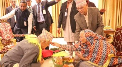 Kathmandu, Oct 24: President Ramchandra Paudel received the Dashain tika, jamara, prasad and blessings from
