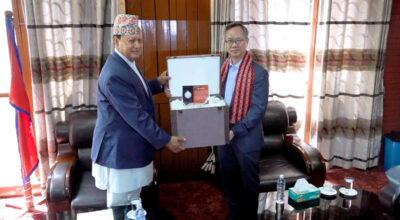 Kathmandu, Sept 3: Chinese ambassador to Nepal, Chen Song, paid a courtesy call on Minister