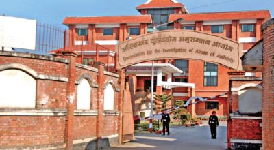 काठमाडौं,२२ साउन । अख्तियार दुरुपयोग अनुसन्धान आयोगका २० कर्मचारीमा कोरोना भाइरस (कोभिड–१९)को सङ्क्रमण देखिएको छ