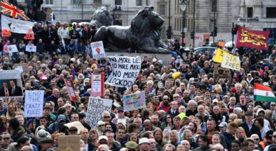 लन्डन, २१ कात्तिक । बेलायतको राजधानी लण्डनमा सरकारले जारी गरेको लकडाउनका विरुद्धमा प्रदर्शनमा उत्रिएका १०४