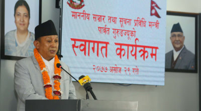 काठमाडौं २९ असोज । सञ्चार तथा सूचना प्रविधिमन्त्री पार्वत गुरुङले प्राप्त जिम्मेवारी पूरा गर्न मन्त्रालयका