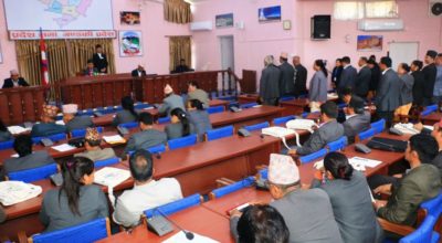 सुदूरपश्चिम । सुदूरपश्चिम प्रदेशसभाको आजको बैठक प्रतिपक्षी दलका सदस्यको विरोधपछि कार्यसूचीमा प्रवेश गर्न नपाई स्थगन