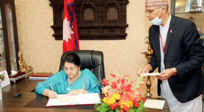 राष्ट्रपति भण्डारीद्वारा स्वास्थ्यकर्मीको सुरक्षासम्बन्धी अध्यादेश जारी