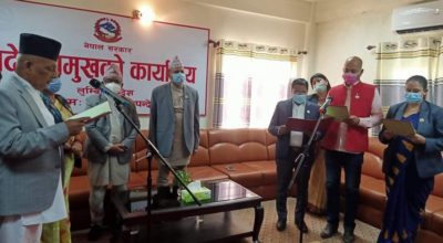 काठमाडौं । लुम्बिनी प्रदेश सरकारका नवनियुक्त मन्त्रीले आज आफ्नो पद तथा गोपनीयताको शपथ लिएका छन्