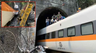 ताइवान, २० चैत । ताइवानको पूर्वी क्षेत्रमा सुरुङ टनेल भित्र खचाखच भरिएको एउटा रेल दुर्घटनाग्रस्त