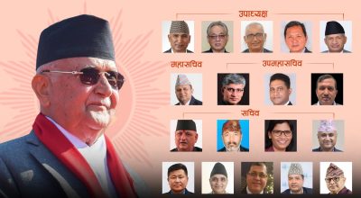 काठमाडौं २९ मंसिर । नेकपा एमालेको ११औँ महाधिवेशन मा अध्यक्ष केपी शर्मा ओली पक्षले पदाधिकारी