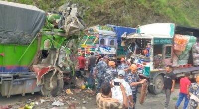 Chitwan, May 22: Seven people were injured when two trucks coming from opposite direction collided