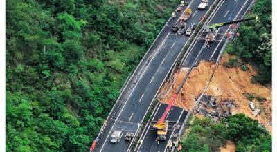Beijing, May 2: A section of a highway collapsed early Wednesday in southern China, sending cars