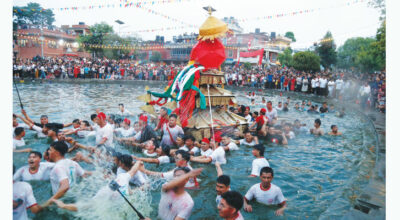 Kathmandu, Apr. 25: A large number of people gathered at Gahana Pokhari of Handigaun to enjoy