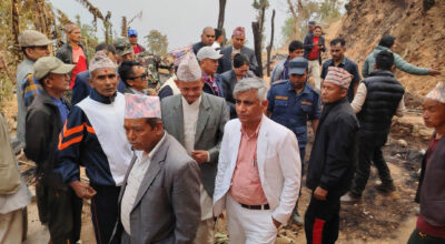 Bhojpur, March 20 : Chief Minister of the Koshi Province, Kedar Karki accompanied by Province