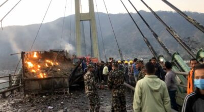 Lamki (Kailali), March 12: Transportation on the Karnali Bridge has been halted after the damage