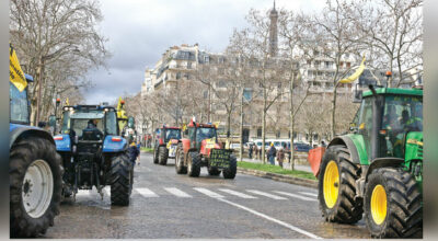 Paris, Feb. 25: Angry farmers were back in Paris on their tractors in a new protest