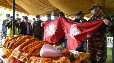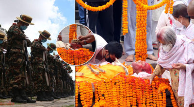 काठमाडौं, ३ भदौ । राष्ट्रिय सम्मानका साथ राष्ट्रकवि माधवप्रसाद घिमिरेको अन्त्येष्टि गरिएको छ । राष्ट्रकवि