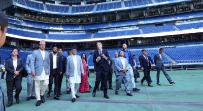 Madrid (Spain), July 3: Prime Minister KP Sharma Oli has visited Santiago Bernabeu Stadium of