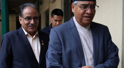 काठमाडौं, २५ फागुन । नेपाली कांग्रेसका सभापति शेरबहादुर देउवा र नेकपा (माओवादी केन्द्र)का अध्यक्ष पुष्पकमल