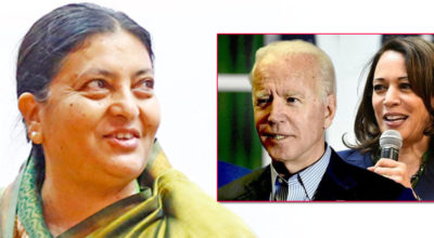 काठमाडौँ, २३ कात्तिक । राष्ट्रपति विद्यादेवी भण्डारीले संयुक्त राज्य अमेरिकाका राष्ट्रपतिमा निर्वाचित भएकोमा डेमोक्रेटिक पार्टीका