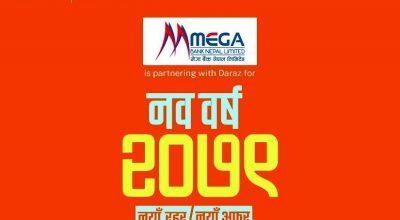काठमाडाै, २९ चैत । मेगा बैंक नेपाल लिमिटेडका ग्राहकहरुले नयाँ वर्षमा दराज डटकमबाट सामान खरिद