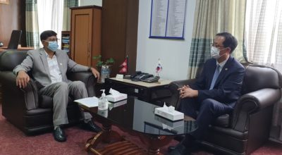 काठमाडौं, १३ साउन । नेपालका लागि दक्षिण कोरियाका राजदूत पार्क चोङ–सुकले अर्थमन्त्री जनार्दन शर्मासँग शिष्टाचार