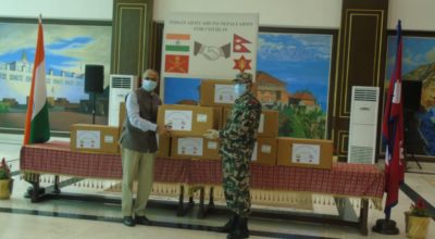 भारतीयस सेनाबाट नेपाली सेनालाई स्वास्थ्य सामग्री सहयोग