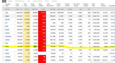 नयाँदिल्ली, ३ जेठ । गत २४ घण्टामा भारतमा ३ हजार ९७० जना कोरोना भाइरस संक्रमित