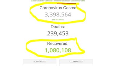 कोरोना भाइरस : ३३ लाख ९८ हजारबढी संक्रमित ,ज्यान गुमाउनेको संख्या २ लाख ३९ हजार नाघ्यो (कहाँ कति प्रभावित सूचिसहित)