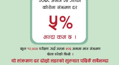 सङ्क्रमण दर पाँच प्रतिशतभन्दा कम