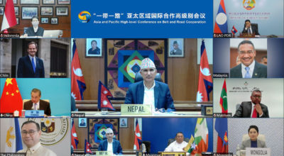 काठमाडौं, १० असार । चीनले नेपालसहित एशिया प्रशान्त क्षेत्रका मुलुकका परराष्ट्र र अर्थमन्त्रीहरुसँग बेल्ट एण्ड