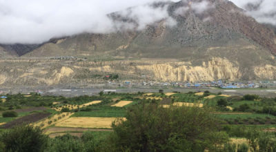 काठमाडौं ११ असार । हिमालपारिको जिल्ला मुस्ताङको सदरमुकाम जोमसोम बजार र खेतबारी । पानी परेपछि