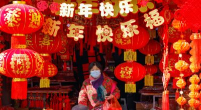 People buy festival items at a wholesale market in Chengdu, Sichuan Province on January 19,