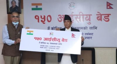 भारतीय राजदूत क्वात्राबाट १५० आइसीयु बेड नेपाललाई हस्तान्तरण
