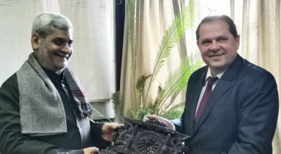 स्वास्थ्य तथा जनसंख्या मन्त्री हृदेश त्रिपाठीलाई नेपालका लागि रसियाका राजदूत अलेक्सइ ए नोविकोवले शिष्टाचार भेटवार्ताको