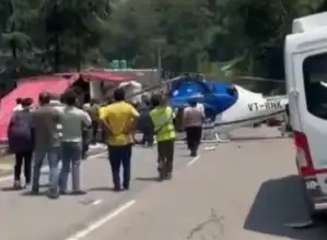 June 7: A private helicopter crash-landed on Saturday in the Badsau area of Rudraprayag district