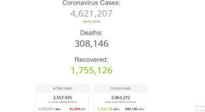 विश्वभर कोरोना भाइरसबाट ४६ लाख २१ हजार १२५ संक्रमित, १७ लाख ५५ हजार भन्दा बढी निको (कहाँ कति प्रभावित सूचिसहित)