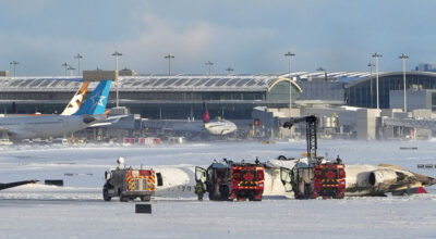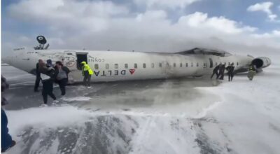 Toronto, Feb. 19: A Delta Air Lines jet flipped on its roof while landing Monday at