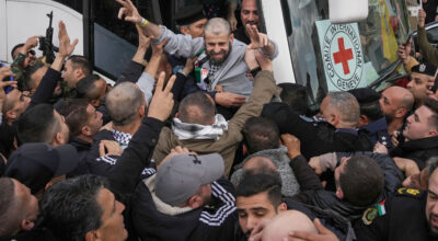 Gaza Strip Feb.2: Hamas militants freed three male hostages held for more than a year in