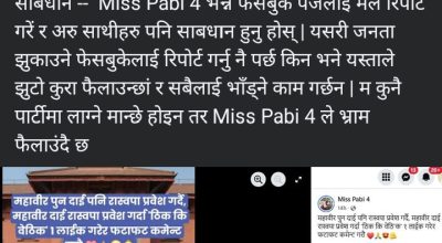शिक्षामन्त्री महावीर पुनले गरे मिस पबी ४फेसबुक पेजविरुद्ध रिपोर्ट
