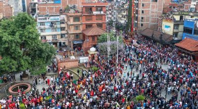 ललितपुर, २१ वैशाख । वर्षा र सहकालका देवता मानिने रातो मछिन्द्रनाथको जात्राअन्तर्गत आज अपराह्न पुल्चोकस्थित