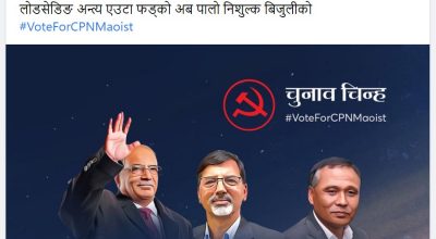 काठमाडौं, ३० चैत । नेकपा (माओवादी केन्द्र)ले चुनावी चुनावी प्रचार सामग्रीमा नेपाल विद्युत् प्राधिकरणका कार्यकारी